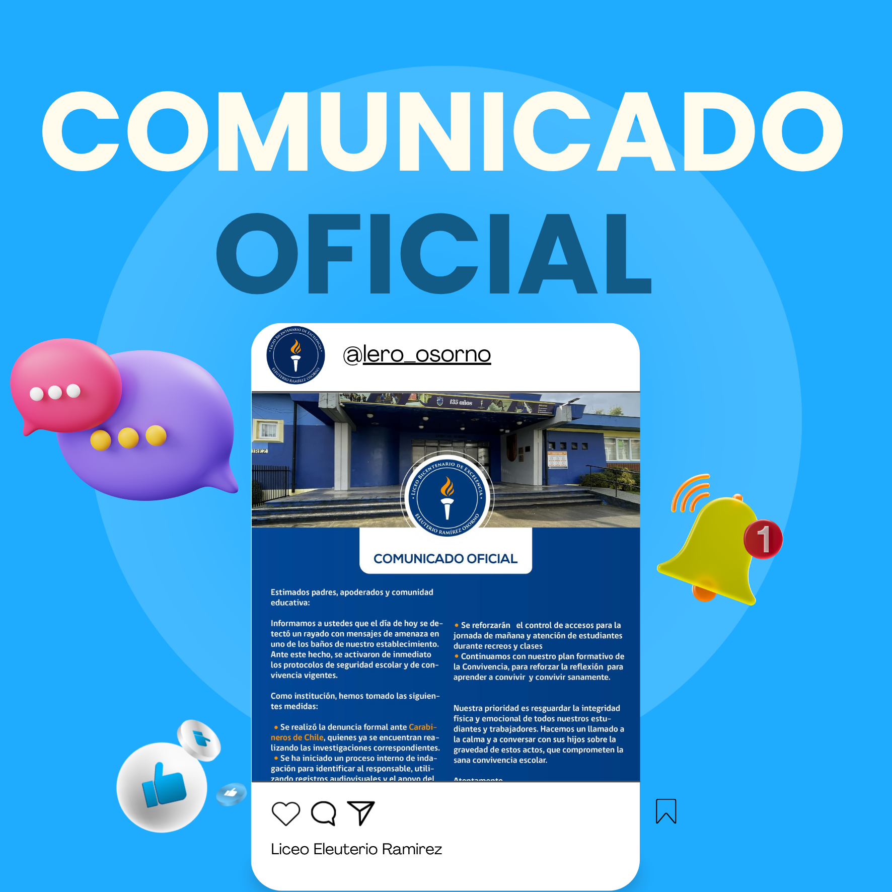 Como Liceo Bicentenario de Excelencia Eleuterio Ramírez, nuestra prioridad absoluta es la seguridad y el bienestar de nuestros estudiantes y trabajadores. Por ello, ya se han activado todos los protocolos correspondientes, incluyendo la denuncia formal ante Carabineros de Chile y el refuerzo de la vigilancia en accesos y recreos.